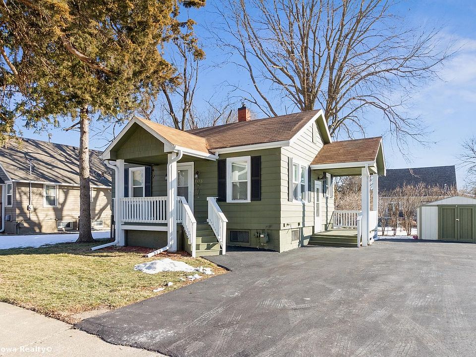 Move-in ready 2 BR home NEW carpet, paint, driveway, roof vents, doors, blinds, shed doors, electrical breakers and newer windows, appliances, updated kitchen & laminate flooring. Extra shower in LL. Ready to finish LL lots of storage Two lovely covered porches, large corner lot. On bus route Great Location