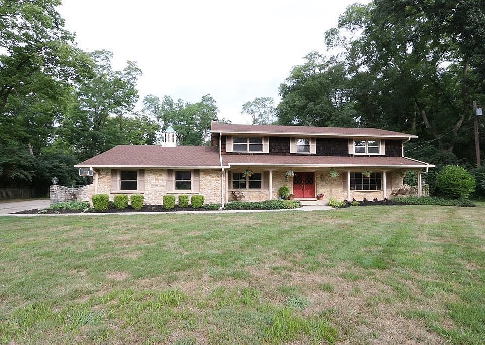 This spacious brick 2 story features 3582 SF + a full bsmt & is convenient to everything! Enter the gracious entry from the front porch & you can access the living rm w bay window, the library/study or the kitchen & breakfast rms. The floor plan is open & perfect for large scale entertaining. The dining rm is off the living rm & beside the large, open, fully equipped cook's kitchen w/island, planning desk, abundant cabinets & prep space w granite counters. The large family & breakfast rms are separated by a see through FP. The 2nd level has a master suite, 3 bdrms & 2 baths. The main level library could be used as a 5th bdrm & a full bath is also convenient for pool use. The sun porch, patios, pool & barn make the appox 1.11A of wooded privacy perfect for family fun! The bsmt has room for rec, multiple uses & abundant storage. The home is being sold "As Is" & priced for the updates & TLC required to return her to her former grace & glory. (Renovations in various stages.) Flood Ins.