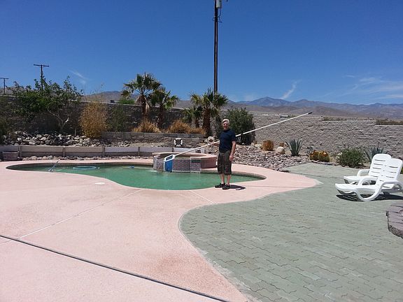 Beautiful Pool home and a large lot with RV parking and a large den/office. 4 Bedrooms, 2 Baths, great views of the mountains. Open floor plan. Nice desert landscaped. House has central A/C and Swamp cooler.
