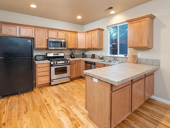 Bring an offer!! Sellers motivated. Home is located two blocks from Pine Ridge Elementary School in SW Bend. 4 bedrooms, 2.5 baths, bonus room with 2,469 sq. ft. of living space. 4th bedroom could be office/den. Main floor has hardwoods and carpet, with tiled bathroom. Open floor plan downstairs, great for entertaining. Kitchen has breakfast bar, masonry accents, stainless steel gas appliances and recipe desk. Living room has gas fireplace with mantel. Finished bonus room upstairs. Walk-in glass shower in primary bathroom with walk-in closet. Man door from garage, air conditioner/heat pump, BBQ gas stub off patio, newly pored concrete walkway on side of home, new landscaping, fenced yard with sprinklers. Great neighborhood and close to the Old Mill.