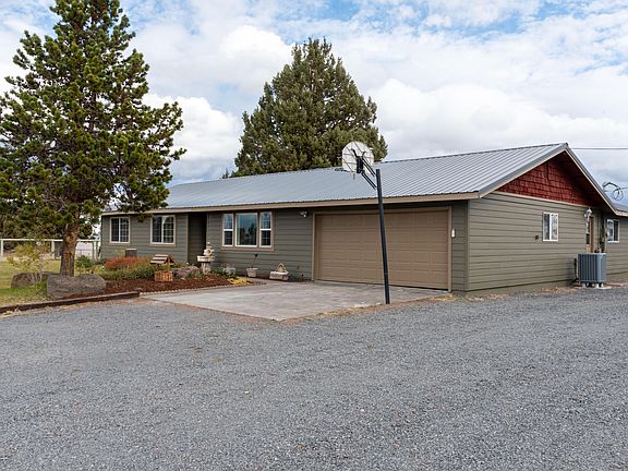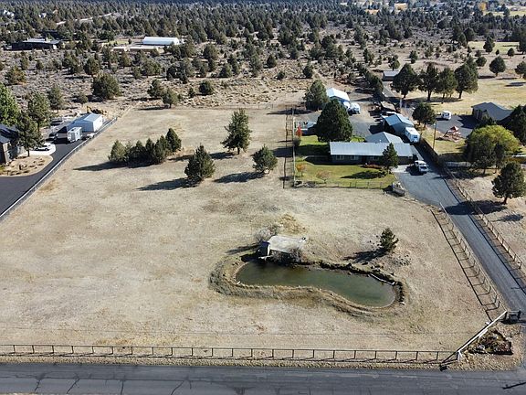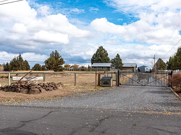 Horse property in SE Bend great country neighborhood 10+acres with Mtn. views! Single level home with 2289 sq. ft., 3 bedrooms plus office with walk in closet, 2 baths, living room with woodstove, barn door entrance to family room, large utility w/sink, cabinets & closet. Spacious kitchen with custom cabinets, pantry, eating bar & extra sink. Vaulted primary bedroom suite with walk in closet, bath, bedroom separation & door to backyard deck. Home has central vacuum, storage, garage, metal roof, fenced backyard, hardi-plank siding, new exterior paint 2021, new furnace & heat pump in 2017. Outside features a solar gate entrance, pond with 2.75 acres of underground timed Irrigation, fenced & cross fenced, 36x48 4-stall barn w/tack room, chicken coop, 24x32 3-sided shop, 12x12 insulated dog kennel w/2-6' high dog runs, fenced garden area with raised beds & property borders Park & Rec land for easy access to ride, hike or bike. Includes buyer home warranty, larger than looks not a drive by.