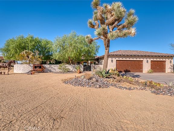 A homeowner's delight nestled in the heart of Joshua Tree...Seeing is believing with this one-of-a-kind exquisite property. Built in 2013 this Mediterranean Style home offers over 2500 square feet of living space and is custom from floor to ceiling. Featuring renowned woodwork and cabinetry throughout every detail is placed with purpose and poise. An open split floor plan 2 bedrooms 2 baths, with office that could easily be turned into a 3rd bedroom, grand living room, craft room, a cooks kitchen indulgence, including a wraparound bar, island with prep sink, beverage refrigerator and a large walk-in pantry just to name a few. This property is flooded with natural light allowing the beauty of the desert to surround you and it doesn't stop there! The home has multiple patios with handcrafted iron and masonry work, views that mesmerize and give you that retreat feeling you're looking for along with a deluxe swimming pool complete with automatic cover, shade structure and is heated by solar. Pool is surrounded by a unique desert mural painted by local artist. Outside the Master suite a luxurious hot tub awaits you for those relaxing starry nights. A three-car garage is attached to a breeze way and gorgeous courtyard equipped with mature planters, overflowing flower beds and a trickling water fountain. Home is abundantly full of extra amenities such as instant hot water heater, water softener, outside icemaker, dog run, doggie door and more...Come make this desert property a reality and call Joshua tree Home sweet Home! Shown by appointment only.