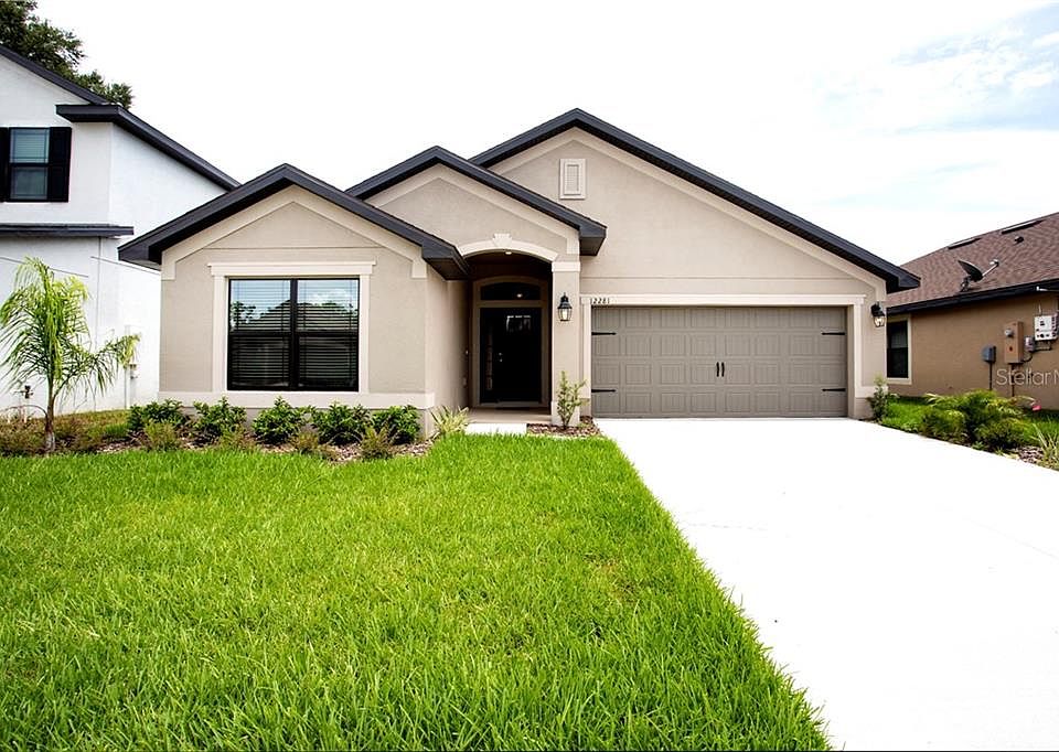 Beautiful 3 bedroom, 2 bath home with a spacious 2 car garage! If a quick move-in is what you want, this Adams Homes model, 1720B, might just be the one! Full of quality features including, extended tile throughout the living and wet areas, upgraded cabinetry, granite kitchen counter tops and a covered lanai for relaxation after a long day! In addition, this home has gorgeous stone exterior, a 5 foot tiled shower in the master bath, complete with 5 ¼" baseboards, 5 panel doors, vaulted ceilings, stainless steel energy efficient appliances, double pane insulted windows, front/rear irrigation system and so much more! There are too many features to name; it's a must see! Call today to schedule a private showing. Builder pays closing costs with preferred lenders, minus pre-paids/title insurance. Only $1,000 deposit required. ***Pictures are of model home and not of actual home***