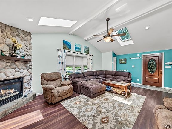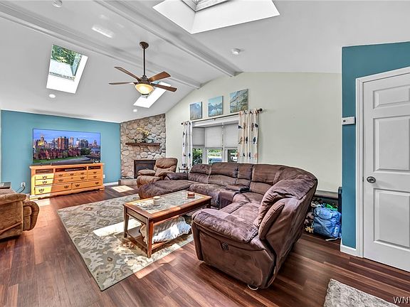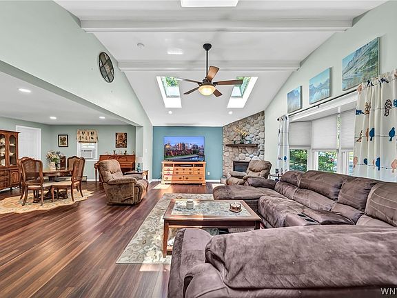 This exceptional home offers a blend of comfort and style with its 4 bedrooms, 2 full baths, and 1 half bath. The eat-in kitchen, perfect for casual meals, complements the formal dining room, ideal for entertaining guests. The expansive living great room boasts cathedral ceilings, skylights, and a cozy gas fireplace, creating a warm and inviting atmosphere. New flooring throughout the first floor enhances the home's modern appeal. The enormous backyard provides an ideal space for family gatherings, while the back deck serves as the perfect hangout spot. Recently planted Thuja Green Giants along the property line ensure added privacy. Inside, you'll find versatile areas suitable for office space, playrooms, or additional storage. The property also features a waterfront canal across the street, perfect for adding a dock or stairs for easy access to the water. The finished basement, complete with egress windows, adds approximately 600 square feet of additional living space, perfect for a home gym, media room, or guest suite.