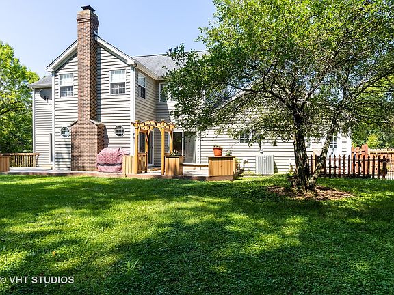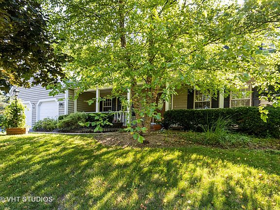 You will be proud to call this comfortable, classic home on a wooded acre in an upscale custom neighborhood HOME. Your tour begins with the welcoming front porch. The hard wood foyer separates the private dining room and living room. The spacious kitchen offers granite counter tops, Stainless Steel appliances, ceramic back splash, pantry and a center island. Many details include crown molding, chair rail, hard wood flooring, two newer sliding doors, recessed lighting, brick gas log fireplace, six panel doors and multiple decks. New carpeting Upstairs! The bright Master Bedroom Suite offers multiple windows, ceiling fan, spacious closet and adjoining bathroom suite with wonderful diagonal ceramic tile, separate jetted tub and dual sinks. Upstairs you will also find 3 other freshly painted bedrooms with deep closets and a nicely updated hall bathroom. The walk out lower level has a spacious in-law possibility that already includes a recreation room, plenty of storage, full bathroom, kitchenette opportunity and sliding doors that open to a deck and the beautiful side yard. The serene fenced backyard offers dual decks that are 22x14 and 16x14 with creative custom seating, trellis and planter boxes. Outdoor Natural Gas Hookup for Gas Grill that is staying. Driveway has a side apron for extra parking. Enjoy the peace and tranquility while taking advantage of the close by Metra train line and all of the amenities that Crystal Lake has to offer!
