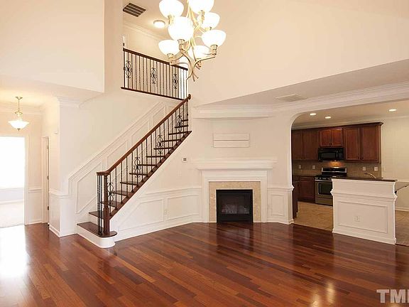 Beautiful end unit townhome in terrific neighborhood. Lots of open green space with tree views and privacy. Downstairs bedroom with full bath. Upgraded light fixtures and trim throughout. Soft-close kitchen cabinets. Nice open space views. Located near the pool and quick access to RTP and RDU airport for work and vacations!