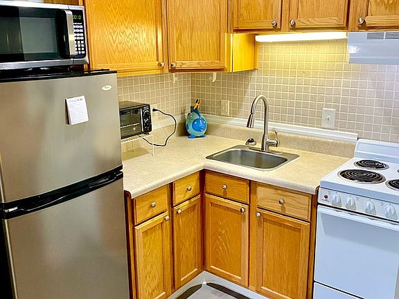 This Harbour Master Villas efficiency features a kitchenette with has a sink, four burner stove with oven , apartment sized fridge, and microwave with a private outdoor balcony overlooking tennis courts. The room is comfortably furnished with a queen bed and headboard, new sofa, end tables and lamps. Utilities included! Water, sewer, and electric and are included in the monthly rent. Fairfield Harbour offers beautiful views of the Neuse River and is just 12 miles from the City of New Bern. It is an active boating community offering amenities everyone can enjoy including an 18-hole golf course, tennis courts, fishing and other outdoor pursuits. Membership to the Broad Creek Recreation Center is available to Residents of Fairfield Harbour and offers an indoor and outdoor pool, sauna, fitness room, and computer access, mini-golf, bike rentals, and more!