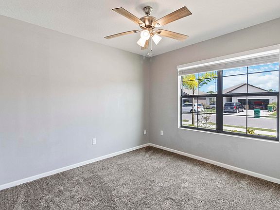 This spacious floor plan offers 4 bedrooms and 2 full baths. A large kitchen island overlooks the dining area and living room, creating an open concept living space, perfect for entertaining. It also delivers a large Owner's Suite with walk in shower, a double vanity, large walk in closet with newly installed closet organization system, and linen closet. Kitchen includes 36'' espresso cabinets, stainless steel appliances including the refrigerator, ceramic tile flooring in living and wet spaces and new carpet installed 2023 in all bedrooms. Extended lanai is screened and overlooks a fully fenced backyard with plenty of room for a pool. **Some photos have been Reality Staged. Items have been simulated into the space to show potential and design services are included with the purchase of this home.**