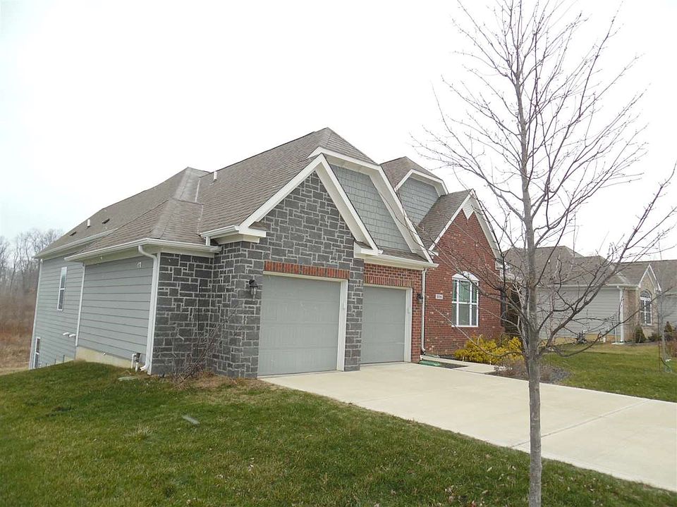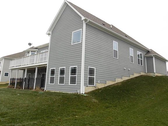 Open floor plan, all wood floors, crown molding, brushed nickle hardware. Master suite with walk-in closet. Main floor 2,400 square feet, an additional 2,400 square foot walk-out basement. Large 30 foot deck on 2nd floor. Steel fenced in dog run. Brick exterior with "Hardie" cement board siding. Natural gas fireplace. 2 car garage with 2 garage doors. Full bathroom in "jack 'n jill" for 2nd and 3rd bedrooms. Includes den that can be used as an office. Very spacious, 9-12 foot ceilings throughout the house. House features the largest floor plan originally available by MI Homes. Set in a small private neighborhood in Tipton, one of very few homes with basement (unfinished).
