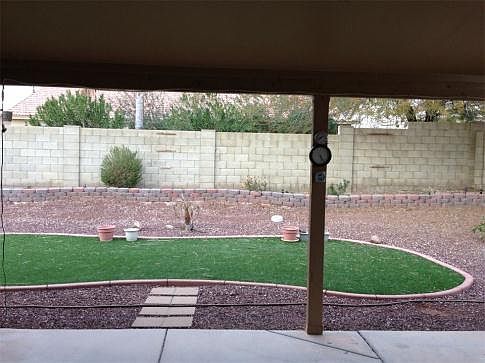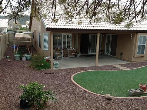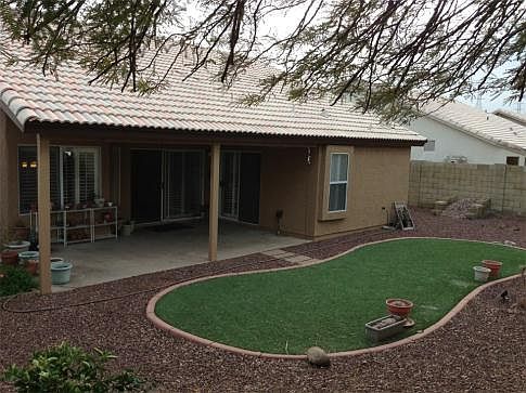 Cute 3 bedroom 2 bath dollhouse has soaring ceilings for a spacious, open feeling. Efficient kitchen with stainless sink has ample cabinetry and a sunny eat-in area surrounded by bay windows. Oversized Arcadia door brings in more light and views of the neat backyard. Plantation shutters on windows and Arcadia doors dress it up. Large covered patio faces north for year-round shade. Raised garden and faux grass accessorize your Arizona experience, as do views of the mountains to the north, south and west. Master bedroom is roomy and has a separate exit to the patio. Master bath has his-n-hers sinks, and a huge step-in shower. Separate laundry room, enormous 3 car garage with pedestrian exit to back yard. WELCOME HOME!