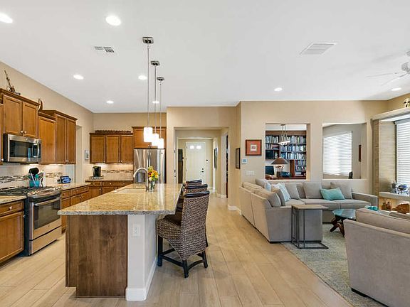 We're proud to present this rare 2016 Lago Villa in SaddleBrooke Ranch. This 2 bedroom + den / 2 bathroom / 1,776 SF / 2 car garage Villa has pride in ownership & feels more like a home than a villa. Updated kitchen with stainless steel appliances, granite countertops, gas range, custom marble backsplash, upgraded cabinets & large pantry. Updated owner's suite bathroom & guest bathroom. Den/Office/Library with custom wood cabinets. Living room with floating shelf system. Dining room area with large slider for indoor/outdoor living. Serene paint colors, updated lighting, & Hunter Douglas blinds. Laundry Room with cabinets & utility sink. Garage with epoxy coated floor & custom cabinets. Covered patio with pavers & electric Tucson Rolling shade. Just the place to call home!