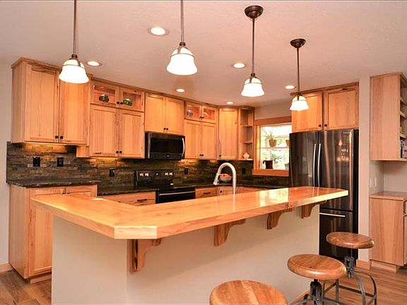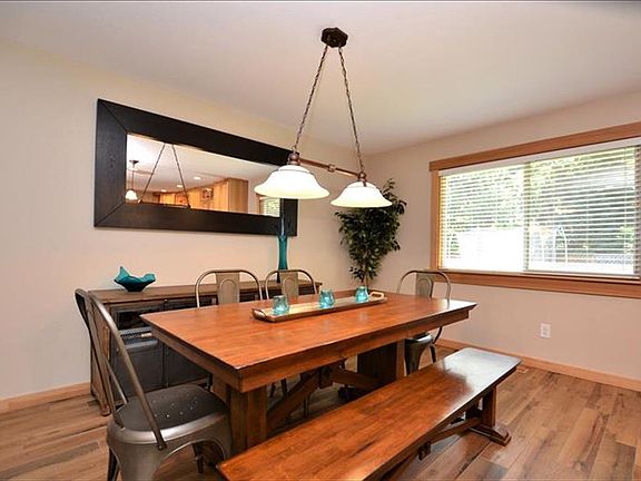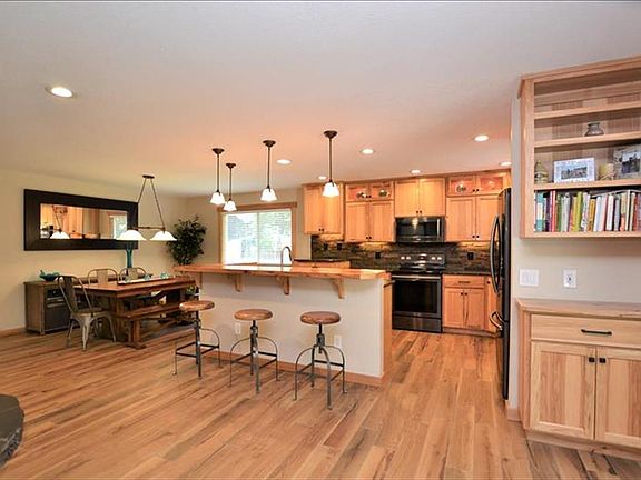Beautifully remodeled! You will fall in love with this single level home in Bend's Pinebrook neighborhood. The kitchen is warm and inviting with wood tile floors, new kitchen appliances, leather granite chiseled edge counters, island/breakfast bar, and cozy wood stove. The living room features heated wood tile flooring, vaulted ceiling with exposed wood beams, skylights and recessed lighting. There is a bonus room with newer glass door and transom window just off of the two guest bedrooms. The master suite has a private entrance to the hot tub outside. The spa-like bathroom is complete with double vanity, free-standing soaking tub, custom tile shower, walk-in closet and heated travertine floors. New gas furnace, hot water tank, and AC. Two-car garage plus two storage buildings. Outside is beautifully landscaped, fully fenced and backs to common space. Plenty of room for RV parking and more! (Currently has short-term rental permit for potential income - buyer to do own due diligence.)