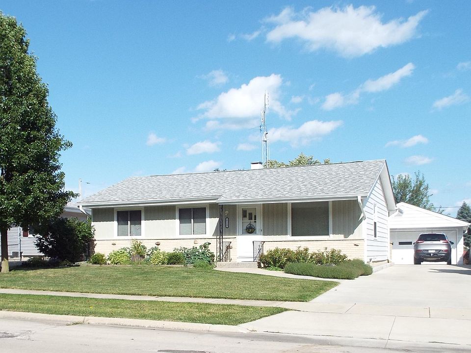 3 Bedroom, 2 Bath 1 OWNER Ranch with 2+ car detached garage. 4 Season Room has Bay Window, coat closet, linoleum floor + breakfast bar. Eat-in Kitchen has gas stove, microwave, side x side refrigerator, mirrored backsplash and linoleum floor. Carpeted Living Room with coat closet + built-in bookshelf. Carpeted hallway has 2 closets, 3 bedrooms and full bathroom. All bedrooms carpeted, with slider closet + ceiling light. Full bath has ceramic tub surround with slider doors, vanity + 3-mirror medicine cabinet. Basement has spacious rec room great for entertaining & gatherings. Tiled floor, poured concrete walls, drop ceiling, glass blocked windows and a full bath. Laundry & Utility Room, workbench + 2 slider closet pantries. Rheem Hot Water Heater, Rheem Gas Furnace, Central Air & Aprilaire.
