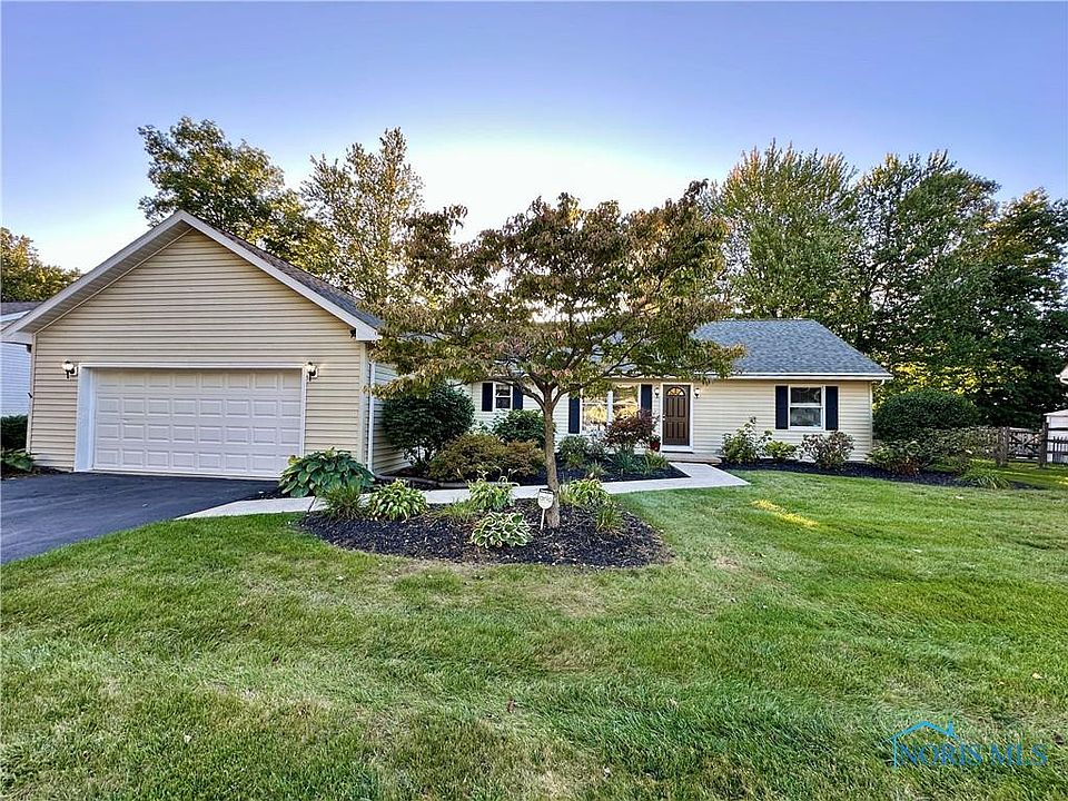 Ranch home in Sylvania schools. Living room, cathedral ceiling & slider to 21x16 deck; Eat-in Kitchen with loads of cabinets, snack bar & pantry; 1st floor Laundry & ½ Bath off attached Garage. Primary Bedroom with walk-in closet, double bowl sinks, separate shower & garden tub; Two bedrooms on opposite end of ranch & full bath; LVT flooring flows through Foyer, Living Room, Kitchen, Guest Bath, Laundry & ½ Bath. Full Basement with egress window. Pride in landscaping front/back, with white vinyl privacy fenced backyard. Two car garage, attic storage & Shed.