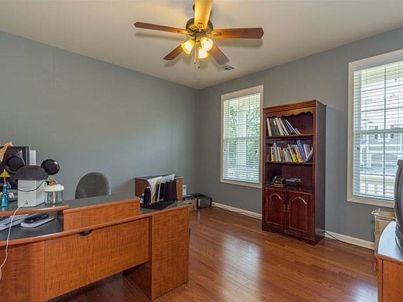 - Interior: 10 ft+ Ceil Main, Hardwood Floors, Trey Ceilings, Walk-In Closet(s), Bookcases, His & Her Closets, 10 ft + Ceil Upper