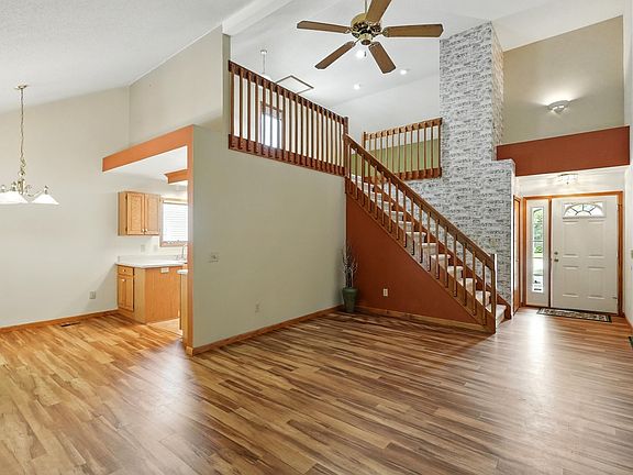 Northbrook lofted ranch. 3 bedrooms, and 2 full bathrooms featuring nearly 1500 sq ft of living space. Well established neighborhood, mature trees and shrubbery. Manicured lawn and landscaping. Quiet neighborhood, great location. Open floor plan and high ceilings. Vinyl plank flooring throughout most of the main living areas. Gas log fireplace with brick surround in the living room. Stained trim and kitchen cabinetry. All major kitchen appliances will remain with the home. Primary bedroom has cathedral ceiling, walk-in closet, and private bathroom. Large loft area up the stairs. Concrete patio and 16 x 14 wood deck, lots of shade out back. New HVAC installed and air ducts cleaned 2023.