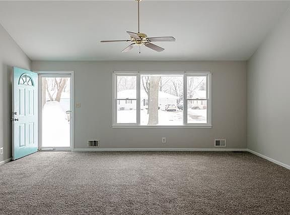 Super clean ranch on a quaint cul de sac, minutes from Shawnee Mission Parkway and freeways. Recent paint and carpet, new roof less than 3 months old, beautiful custom kitchen cabinets, large level lot with adorable storage shed! Good sized deck off the kitchen and family room. Converted garage could easily be extended utilizing existing door. Large family room great for relaxing and watching television. Television mount stays! The carpet is new so please wear the provided booties or take off shoes. There is a large carpet remnant by the door to keep your shoes. 2021-03-20