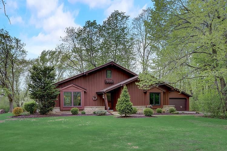 PRIVATE ''CHALET IN THE WOODS'' ON OVER 1 ACRE, SECOND GARAGE, MAINTAINED BY METICULOUS ENGINEER!Partial wooded lot at end of private cul-de-sac hosts this beautifully maintained cottage ranch 3bed, 2bath home w 2.5 car attached garage, 24x20 detached garage, 8x10 wood barn shed. Quality built home w vaulted and beamed ceilings, hardwood floors throughout, 2 panel solid oak doors, oak crown molding, oak staircase, on demand water heater. Kitchen boasts plenty of cabinets, pantry with custom spice rack, dinette area, Corean counter top/sink, w breakfast bar for extra seating. Sunken Family rm has floor to ceiling Lannon stone FP with Quadra fire wood insert , heatilator fan, patio door to 18x18 concrete patio, overlooking prairie length backyard. Much more to see when you setup your Appt!