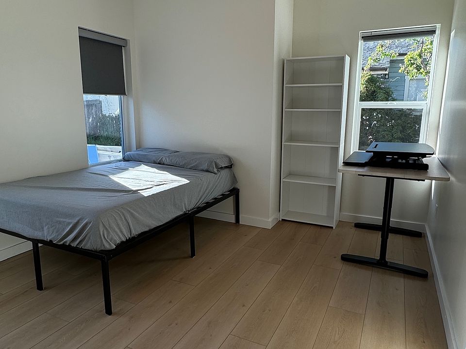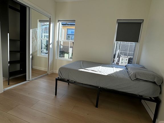 Experience modern comfort in our newly constructed unit with two spacious bedrooms available for rent. Each room has large windows for ample natural light and 9-foot ceilings enhancing the airy ambiance. Features include a modern kitchen with brand new appliances and plenty of counter space, a shared bathroom with high-end finishes, and on-site laundry facilities. Located just 15 minutes from UC Berkeley, our property offers easy access to Berkeley Bowl, Public Market, and Berkeley Aquatic Park within walking distance. The Emery Go-Round, a free shuttle, is nearby for quick trips to Bay Street, Emeryville, and Berkeley. Enjoy proximity to attractions like Bay Street shopping, Doyle Hollis Park, and Emeryville's vibrant arts scene. With a walking score of 94, our location is a walker's paradise!