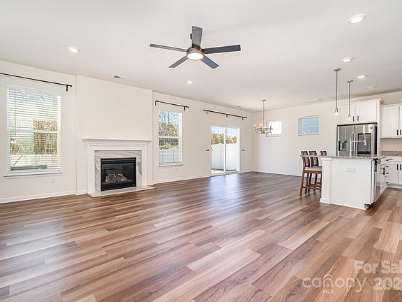 Welcome to your new home at 6115 Hampstead Pond Lane! This home boasts a seamless open floor plan, featuring a spacious living room, dining area, and a modern kitchen equipped with an island, gas stove, and sleek stainless steel appliances. The main level has durable EVP flooring, providing both beauty and resilience, while the stairs are elegantly carpeted and accented by a wrought iron railing. Upstairs, you'll discover a large loft area, perfect for a home office or recreation space. The owner's suite is a true retreat, complete with a roomy shower and a walk-in closet for all your storage needs. Two generously-sized bedrooms, located off the loft, offer ample space and comfort, and the hall bathroom includes a convenient vanity area. The home's split floor plan ensures privacy and optimal use of space, while the neutral paint throughout provides a versatile backdrop for your personal touch.