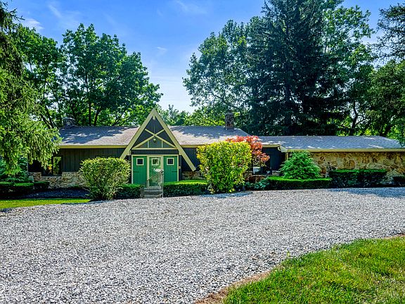 Time capsule alert! Check out this Swiss Chateau style tri-level with 4 bedrooms and 2.5 baths. The cathedral style entry welcomes guests in a home assuredly built for entertaining. Located on over an acre overlooking a sprawling lawn bordered by mature trees and includes a circular gravel drive and two car garage. "The home that speaks of quality" is the tagline for the ad of builder H.G. Lotshaw when this was constructed as a model in the Devonshire III neighborhood in 1965. Originally priced at $47,500 it was touted "as a most unusual and unique home". Many of the original features remain including the Vermont slate entry flooring, the open grillwork wrought iron railings, rough cut cedar posts & beams, built in circular bar with thatched roof effect with built in blender! The main entry level impresses with the foyer, dining room, kitchen with breakfast nook and huge living room. A few steps down to the massive family room with stone wall fireplace and tiki bar. Don't miss the fountain at the lower stairwell. This level includes the 4th bedroom, laundry area and half bath. Upstairs you will find the primary suite featuring original tile in the bathroom as well as bedrooms 2 & 3 with a full hall bath.