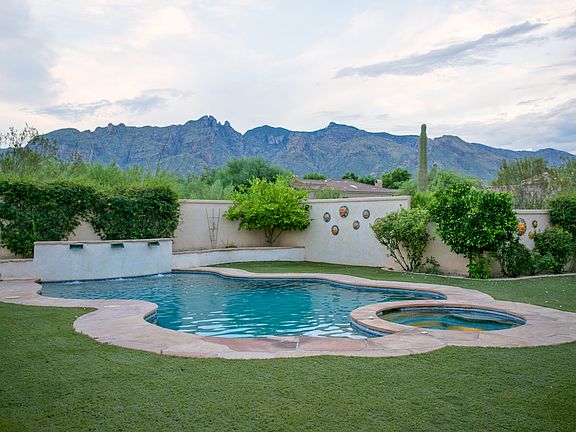 This is the best lot in the Villages of La Paloma! It's on 1 of 3 premium lots in the neighbohod. On almost an acre-it is completely buffered on all sides with natural desert for exteme privacy.Home has over $50,000 in upgrades. Huge picture window with stunning mountain views of FINGER ROCK Mtn off dining room.Sitting area in the Master Bedroom,and an oversized jacuzzi tub in the Master Bath, w his/hers separate closets. Backyard is a gorgeous desert oasis with private pool/spa, an extended covered patio and fruit trees, and synthetic grass, perfect for outdoor living! Home has surround sound (Bose) and alarm system (Honeywell).Bathrooms have white marble countertops and showers. See attached doc for add'l features (too many to list)!
