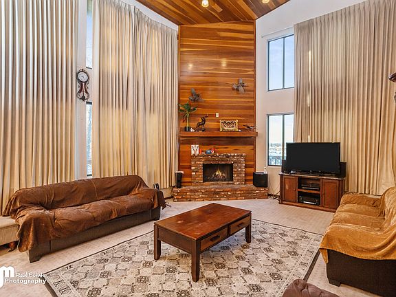 Spacious home with stunning views of Mt. McKinley and city lights. Sprawling high ceilings in living area with lots of windows. B&B or assisted living home potential. Wrap around decking takes full advantage of the beautiful views. Master bedroom has fire place, private bathroom & large closets. Family room downstairs has fireplace and bonus sitting area.