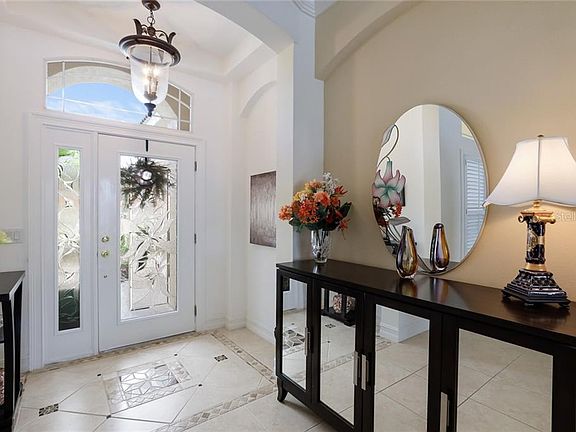 TAKING BACK UP OFFERS - This well appointed 4 bedroom, 3 bath, 3 car garage, pool home overlooking a large lake is one of the most prime locations within the gated community of Mandalay. As you walk through the front door the water views and open floor plan will brighten your day! The attention to detail in the home is a delight to view, with wood planation shutters, mosaic tile accents in the main entrance and guest bedrooms, tray ceilings, light neutral colors throughout and 10' ceilings. The kitchen has lots of cabinets with pullout shelves, pantry, high end Serpentine marble counter tops, and plentiful recessed lighting throughout. Large laundry room with additional storage and space. Master bath offers dual vanities, quartz countertops with china sinks, medicine cabinets, garden tub & separate shower. The A/C was replaced in 2015. No CDD fees and Low HOA makes this an exceptional value in a gated community. Mandalay is an established neighborhood in a fantastic location with easy access to the UTC Shopping/Dining corridor, SRQ International Airport, great schools including Braden River High School, IMG Academy, Ringling College of Art & Design, University of South Florida, & Manatee Technical College, LECOM, New College and gorgeous Gulf Beaches are a short drive away!
