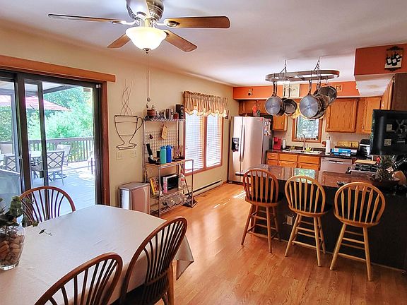 Tucked away in a quiet cul-de-sac of Saw Creek Estates, this contemporary home offers the perfect balance of comfort and functionality. Featuring vaulted ceilings, skylights, and an open-concept living space with a cozy fireplace, the interior feels bright and inviting. Hardwood floors flow throughout the main level, with a dining area that opens to a spacious deck overlooking the wooded backyard — ideal for entertaining or relaxing.