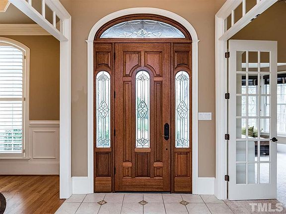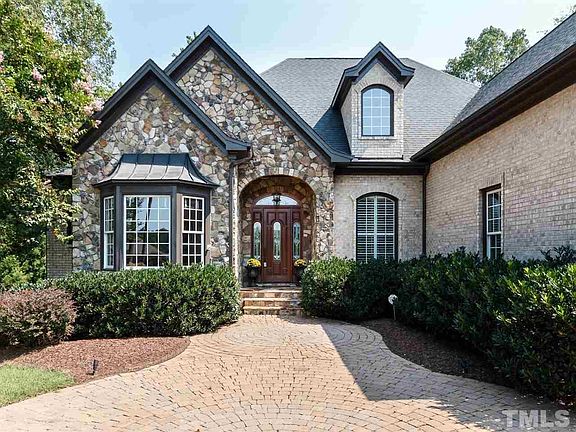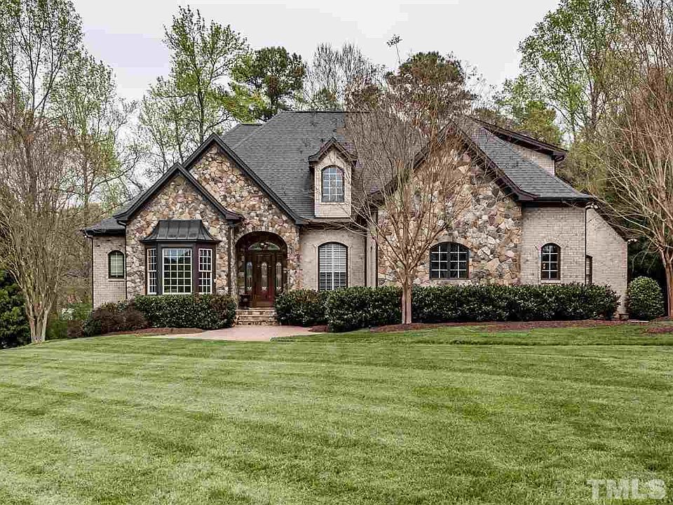 Carlyle Estate Home on private 1 acre manicured grounds, walking distance to Falls Lake & Mountains-to-Sea Trail. Quality & craftsmanship are evident from the extensive mill work, leaded glass & 10' ceilings, to the custom kitchen nook (not built in) & magnificent handcrafted old world pub, that will astonish your guests. Flexible ranch plan w/basement has room for kids and guests. Bsmnt includes exercise & media rm. 3 car garage. Meticulously maintained inside & out. Community pool & tennis.