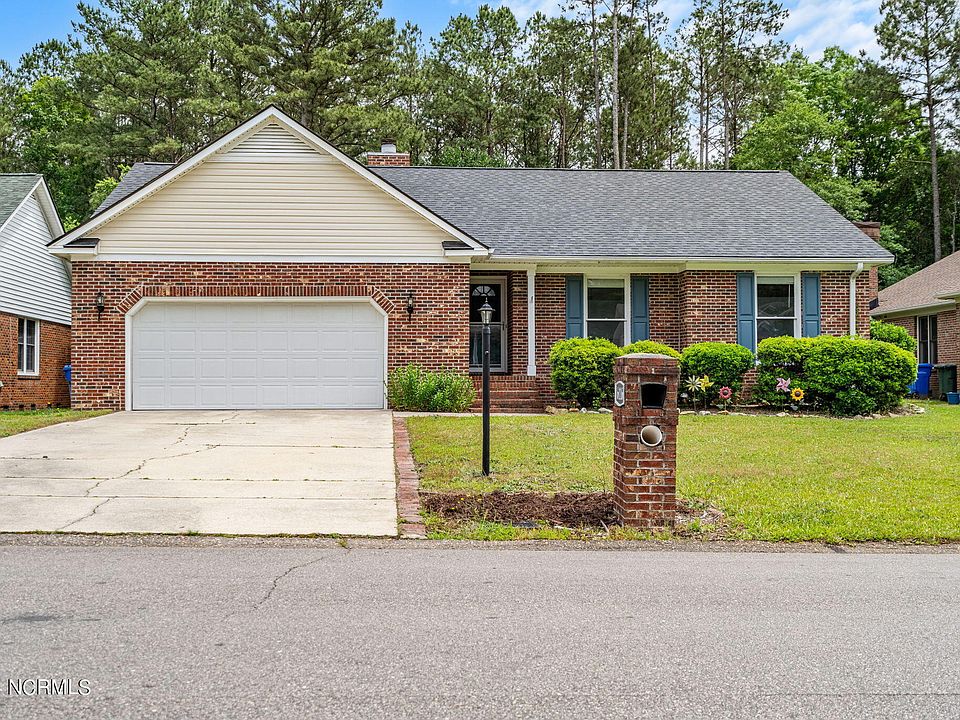 Lovely, well cared for Brick Ranch with 3 beds, 2 full baths. Open concept includes large family room w/ wood burning FP and sliding doors to back yard, dining area w/ Bay window and gorgeous kitchen featuring tile backsplash, SS appliances, floating shelves and pantry w/ sliding doors. Primary suite with jetted tub & separate shower, double vanity, 2 closets! Vinyl windows. New Roof 2022. Large patio in the back, with spacious fenced yard that is perfect for relaxing and entertaining. Located in a small, secluded neighborhood off Ramsey St with quick access to I-295. Also just a short distance from Fort Liberty/Bragg. Don't miss your chance! Come see it today!!