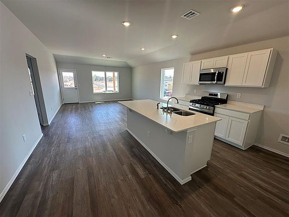 The RIDGELAND floor plan has powerful curb appeal with its charming covered front porch and welcoming front yard landscaping. This home features an open floor plan with 4 bedrooms, 2 bathrooms, a large living room and dining area, as well as a beautiful kitchen with ample counter space, and roomy pantry. Home is currently under construction with anticipated completion in April.