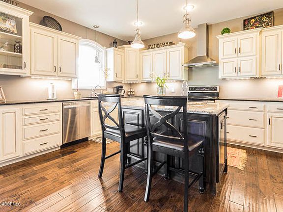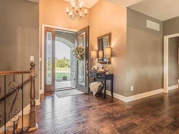 This all brick, custom built home has many beautiful updates and will definitely be an instant favorite! The home feels fresh and sharp, with the gleaming granite kitchen countertops, the glistening, hand-scraped hickory wood floors, and the regal coffered ceilings. You'll appreciate the large master suite with lots of closet space and adjoining master bath! The beautiful view from the spacious, stamped concrete deck is perfect for entertaining friends and family, and the wet bar is sure to be the hot spot! The backyard is huge and beautifully manicured, and the finished basement is great for relaxing! Surround sound and custom lighting is offered upstairs as well as downstairs and the 3rd car garage makes life easy! Ground source heat pump heating is installed for maximum convenience!