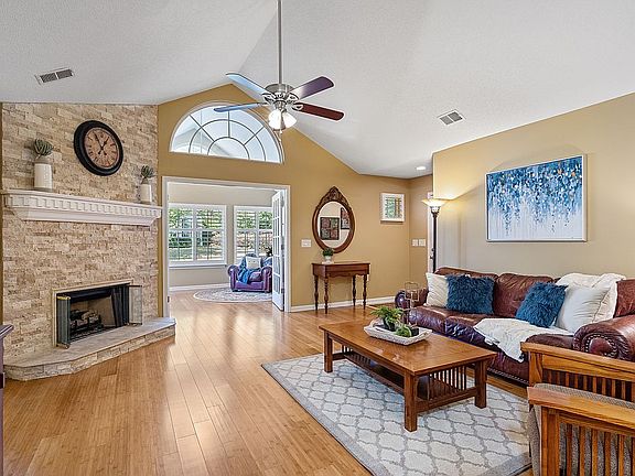 ADULT COMMUNITY WITH SWIM/TENNIS/GOLF! Beautifully maintained and updated with Bamboo hardwood floors, fully renovated bathrooms- new vanities, tile, shower doors, lighting, fixtures and board and batten walls. Two master suites. Walk in closets with custom organizers. Large sunroom makes a great sitting area, media room, solarium or home office. Large family room with new floor to ceiling ledger stone fireplace. Kitchen open to dining area and family room. Mudroom/ Laundry entry from garage. Walk up attic is great for storage. New stone patio at private entrance is great for grilling or enjoying the outdoors. New roof, exterior just painted. New Plantation Shutters. Over $35k in recent upgrades! The Muirfield section of Windermere has a private clubhouse and pool plus Windermere has two clubhouses, two pools, fitness center, tennis, pickleball, basketball and full time activities director. So many activities and ways to meet people. Come join the fun!