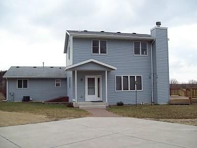 Private country setting! 2080 sf, 3 BR, 2-1/2 bath home on 20 acres tillable land. Features include open floor plan in rec rm/dining/kitchen area, wood-burning FP in FR & french doors out to huge deck. Kitchen-custom maple cabinets, solid surface counters, breakfast bar, pantry & incl. appliances. Master suite-cathedral ceilings, private bath w/jetted tub + shower, ceramic tile, large wic and balcony overlooking property. LL windows for possible future finishing. 3-car garage outbuilding. Sq.ft. is approx.