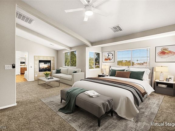 Welcome to this exceptional move-in ready property located in the heart of Las Vegas, Nevada. This charming residence boasts a spacious layout with 5 bedrooms, 3 full bathrooms & approximately 4,429sqft of comfortable living space.The open-concept design allows for plenty of natural light, enhancing the warm, inviting atmosphere throughout the home.The kitchen features appliances & ample counter space, perfect for casual dining or entertaining guests.The master suite is a true retreat, complete with a cozy fireplace & private balcony, offering a perfect space to unwind & enjoy views of the surrounding area.The backyard provides a private oasis with low-maintenance landscaping, ideal for relaxing.Situated in a gated neighborhood, the home is conveniently located near schools, shopping, dining & easy freeway access. With its blend of comfort, style & convenience, this property is the perfect place to call home in vibrant Las Vegas!