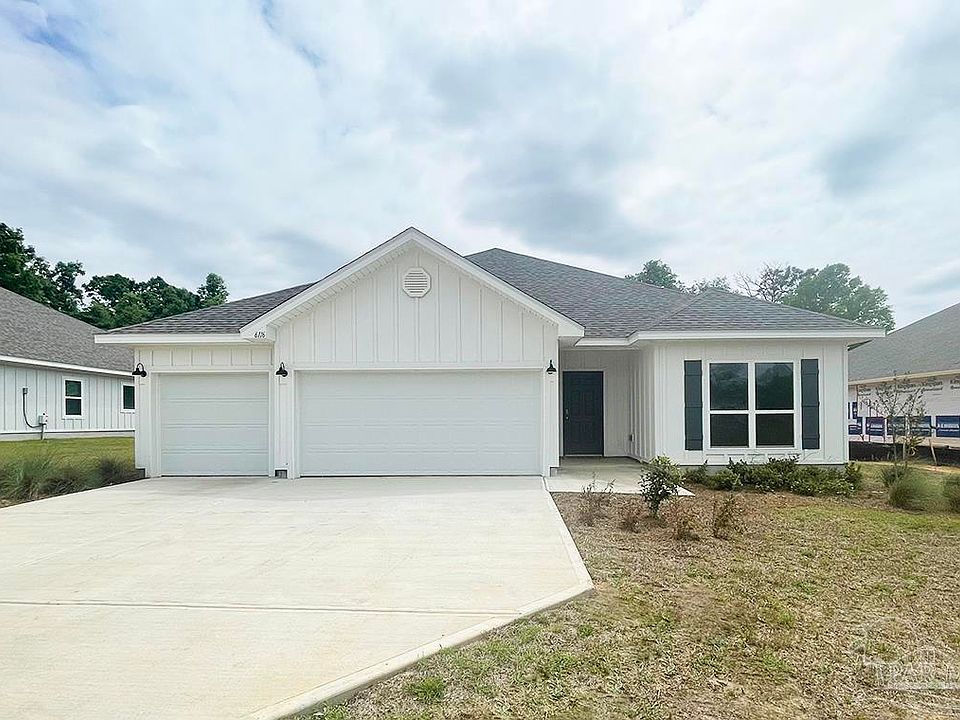 The Destin plan is a beautifully designed 4 bed, 3 bath home with a covered patio and a 3-car garage. This home features a large breakfast nook and separate dining area with a very comfortable open design for easy entertaining. Interior features include stunning granite counter tops in the kitchen and baths, stainless steel appliances, a large island bar and corner pantry. Bedroom 1 is spacious with a walk in closet and adjoining bath that has a double vanity, garden tub and a large separate shower. Beautiful EVP flooring is throughout the home with frieze carpet in the bedrooms. This home comes standard with a Smart Home Technology package which includes a KwikSet keyless entry, Skybell doorbell, automated front porch lighting, an Echo Dot device and a Quolsys touch panel that can control your lighting, thermostat, front door and so much more. A five-minute ride to Interstate I10 puts you minutes from shopping, restaurants, entertainment and Pensacola beach.