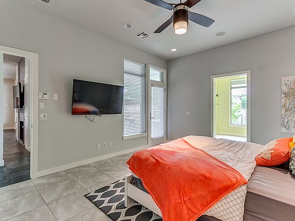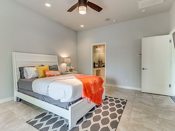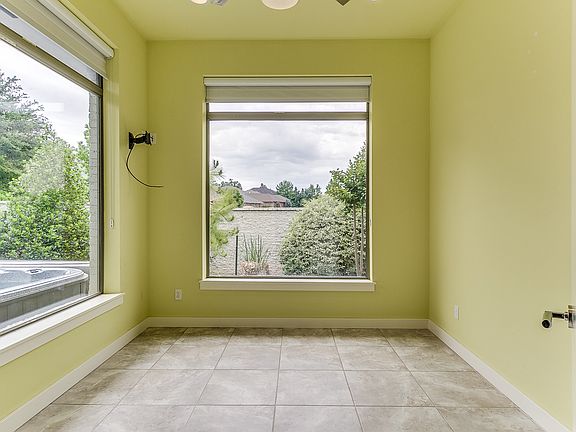 Elegant contemporary one level home. Open living/dining/kitchen with curved counters perfect for entertaining. Professional grade appliances w/wine cooler in your modern kitchen. Beautiful cabinets & plenty of storage. Distinct lighting & glass rock fireplace make the living a wonderful space. Main bedroom retreat has large bath & closet with extra lighting. Also has wonderful flex space off main bedroom that could be office, sitting area, exercise room, massage room. Front bedroom two has exceptional murphy bed/built ins so this room can be dedicated office but also a guest room. Bedroom three has dedicated bath with large walk-in shower. Large laundry room w/lots of storage. Back patio is serene & private. Yard is maintained front & back by association. There is a private clubhouse, tennis court and pool only for The Oaks residents. This one of a kind home has so much to offer. You need to see to believe!
