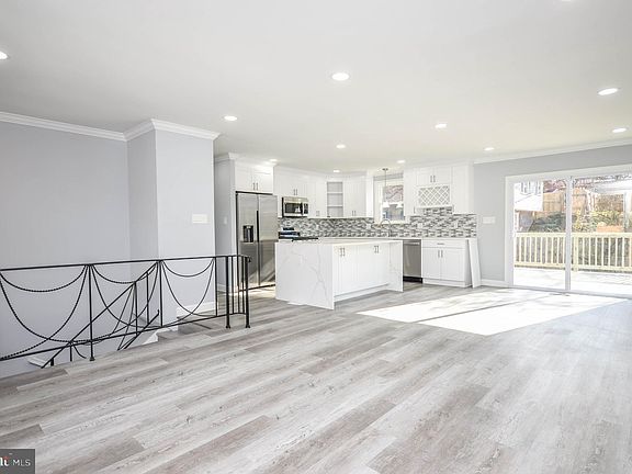 This beautiful split foyer home has been completely renovated and offers 5 spacious bedrooms and 3 full bathrooms. New roof. The main level features an open floor plan with a sunny living room, a dining room that opens up to a private deck through sliding glass doors, and a gourmet kitchen with a large island, stainless steel appliances, and a stylish tile backsplash. Down the hall, you'll find the master suite with a sizable closet and a private bathroom. Two additional spacious bedrooms and a convenient hallway bathroom complete the main level. The fully finished lower level boasts a large recreation room with an electric fireplace and wet bar, creating the perfect space for entertaining or movie nights. Two more generously-sized bedrooms with plenty of closet space, a large laundry room with extra storage, and a full bathroom round out the lower level. Garage access is also located on this floor. The home sits on a large .24-acre corner lot, offering ample outdoor space. Despite its peaceful location, the property is conveniently close to shopping, dining, and major commuter routes, providing easy access to everything you need while maintaining a serene atmosphere. This home truly offers the best of both worlds!