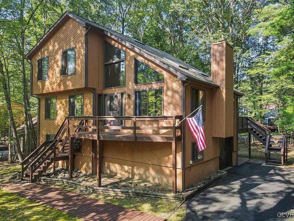 Don't miss out on this fantastic opportunity! Nestled in the trees, this 5 BR, 2.5 Bath Contemporary is located in STR friendly Penn Estates! Situated on a cul-de-sac setting in Stroudsburg SD, this charmer has so many possibilities! Large LR w/ vaulted ceiling, & stone fireplace. Very bright & cheery! The kitchen is perfect for the chef in the house! Big eat in area leads to a huge screened in porch! Two 1st floor bedrooms w/ one bath. The 2nd floor offers 3 additional BR's, a loft plus a spacious bathroom complete w/ a jacuzzi tub for two! The lower level has an extra large laundry room, huge family or media room. You'll love the Hot Tub room. This room can be converted to anything you want! It's heated & has outside access. Be sure to see all the amenities Penn Estates has to offer!