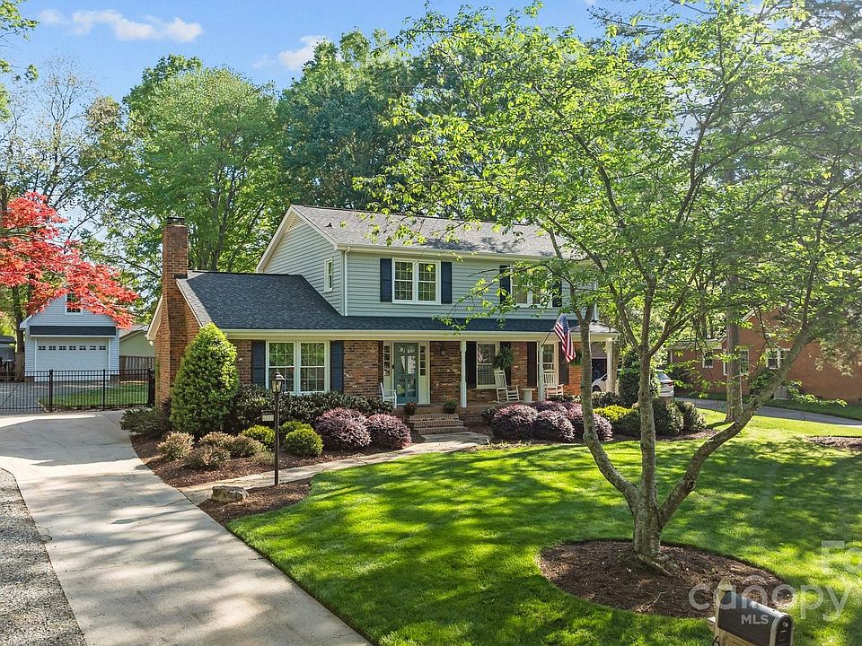 Nestled on nearly half an acre, this home blends classic charm with stylish upgrades in all the right places. Gather around the cozy gas fireplace, host unforgettable evenings on the gorgeous patio, and create your favorite meals in the updated kitchen with sleek gas stainless steel appliances. Inside, you’ll love the warmth of beautiful hardwood floors, upgraded bathrooms, spacious living and dining rooms, plus a bonus flex space perfect for a playroom, office, or second living area. Windows were replaced in 2011 with a lifetime warranty on repairs! The fully fenced backyard offers privacy and room to roam, while the driveway leads to a stunning detached garage equipped with its own power meter and 200 amp service—perfect for your vehicles, hobbies, or storage. Fence is was put up in 2024 and the patio was finished in 2018. All of this in a prime location near Cotswold, SouthPark, Boyce Road Park, greenways, swim clubs, and racquet clubs—this home checks all the boxes!