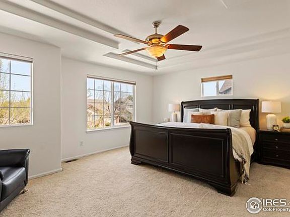 Welcome and discover the perfect blend of comfort, privacy, and scenic beauty in this meticulously cared for 3 bedroom, 3 bathroom, 3 car garage, home in the heart of Timnath Ranch! Thoughtfully upgraded and lovingly maintained by a single family, this home offers a warm, welcoming feel the moment you step inside. The main level features NEWLY REFINISHED rich hickory hardwood floors throughout and a bright open layout. The kitchen is complete with brand new appliances, custom island, granite countertops, and mountain views right from the kitchen sink window. Just off the kitchen, you'll find the living room with a gas fireplace. It's wired for surround sound which is also connected to the outdoor speakers making it ideal for entertaining or relaxing. Upstairs, you'll find a bright versatile loft space with mountain views, and two spacious secondary bedrooms (one with mountain views). Double doors open to your luxurious primary suite complete with tray ceilings and a serene 5 piece ensuite with two walk-in closets. The large laundry room is complete with a utility sink and is conveniently upstairs with the bedrooms. Step outside into the beautifully landscaped backyard, where mature trees, a custom pergola, and mountain views from some parts of the yard, offer a peaceful retreat. Enjoy the jacuzzi and the additional garden beds to the west of the yard. The home backs to open space with walking trails, rolling hills, and reservoir views, enhancing the sense of privacy and connection to nature. You're two short blocks from enjoying the community clubhouse, pool, and park.