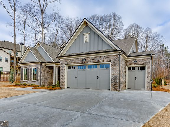 "Lot 174Q - Ansley Plan with Golf Cart/Carriage Garage." ASK ABOUT OUR CURRENT INCENTIVES! This gorgeous 4-bedroom, 3.5-bath ranch plan is exactly what you're looking for! Located in the amenity-rich golf community, Traditions of Braselton, and built by Hillgrove Homes. This new construction home is loaded with bonus features like an upgraded whole house window package, extensive trim, 8X8 storefront window, a WIFI compatible thermostat and irrigation system, Mohawk flooring, KitchenAid appliances, expansive concrete driveway, purposeful electrical plan design, double water heaters, black or bronze door hardware, and upgraded lighting and plumbing fixture package. The spacious gourmet kitchen overlooks the inviting family room, which features coffered ceilings, shiplap, a brick fireplace with a cedar mantle, and built-in custom cabinetry. The kitchen awards premium cabinetry with soft-close drawers and an oversized island, quartz countertops, a pot filler, stainless steel appliances, under-cabinet lighting, a custom tile backsplash, a farmhouse sink, and an expansive walk-in pantry with built-in shelving. The flexible dining/office space right off the foyer showcases stunning floor-to-ceiling trim. Additional features include a mudroom, 10 ft. ceilings on the main floor, a guest bathroom on the main floor, and oversized closets, providing optimal storage. The relaxing primary bedroom offers a primary bath retreat with a tiled walk-in shower, dual showerheads, quartz countertops, custom tilework, frameless glass, upgraded cabinetry, and dual vanities. A true bonus is the large primary closet connecting directly to the laundry room with plentiful cabinets. Additionally, there's a junior primary suite on the main level with a generously sized bathroom and closet. Upstairs, you will find two secondary bedrooms, one secondary bathroom, and additional storage. The covered porch with/ outdoor fireplace overlooks a large, level wooded backyard, and there's a golf cart garage for added convenience. This home is in the highly sought-after Jackson County School District, and the neighborhood is rich in activities like swimming, tennis, pickleball, fitness, golf, a restaurant, and more. The estimated completion date is mid to late January 2026. Ask about our special preferred lender incentives!