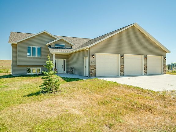 Welcome home! Don't wait to come see this beautiful one-owner home on almost 1.5 acres on a cul-de-sac that has so much to offer and make it your very own! Enjoy sunrises on your east facing deck (freshly stained in 2019!) with marvelous views and no neighbors behind you! Pheasant, deer, and other wildlife are regular visitors. This fabulous home has over 3,000 sf of space and tons of upgrades, including the kitchen with beautiful Birch cabinetry, large center island, upgraded stainless steel appliances, high-definition countertops, engineered hardwood floors, and pantry! The floor plan is open and topped with vaulted ceilings & recessed lighting. The dining room & living room are large and have room for all of your furniture. The main floor has the hard-to-find 3 bedrooms on one level, including the MASTER SUITE. The MASTER SUITE has a huge walk-in closet & full master bath. There is also a full guest bath on the main floor. The WALKOUT basement has a huge family room with gas fireplace and walks out to the rear patio - which was converted into a 3-season hot tub room in 2020! (Hot Springs Salt Water 7-person Hot tub excluded) There are drop-down windows to the 3-season so you can enjoy views to the east while relaxing! There is also a large 4th bedroom with walk-in closet and a large full guest bath. The mechanical/laundry room (washer & dryer included) has tons of storage & the home has an energy-efficient furnace for heating & cooling. Looking for garage space? The oversized 3-stall attached garage is finished and insulated with water, drain, and it's plumbed for a future gas heater! Plus there is room to build a future shop! Recent updates include new shingles, gutters, downspouts & siding on the north side. The home also offers Pella windows & exterior doors & solid 2-panel shaker-style interior doors! Call a Realtor to schedule an appointment to view your next home!