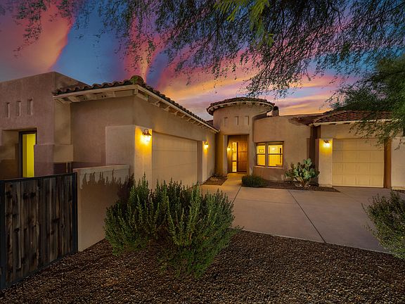 Gorgeous home in gated and guarded La Paloma with amazing convenience, views, and prestige. Step inside, enjoy the great room for virtually unlimited guest potential, and make sure to take notice of the fireplace for those cool winter nights. Embrace this kitchen - you'll notice beautiful high-end cabinetry, bullnose granite countertops, gas stove - plus, additional induction wall appliances in the kitchen - builder upgrades, nonetheless. Seating areas encompass a nook and dining area with a view of the Catalinas after a day of golf at La Palomas Signature 36 holes (consider the very inexpensive memberships). The split bedroom plan is the perfect feature for this home that gives the primary bedroom an oversized feel and access to the covered patio. Inside the primary bathroom, you'll find a separate shower, garden tub, and walk-in closet. From top to bottom, this home is perfectly maintained and impressively well thought out. Don't limit yourself from the ideal vacation home, winter escape, or build your own Air BNB for a "we won't ever sell" house in our gorgeous city. Landscape architect plans with two different options available, just ask - your next chapter starts here!
