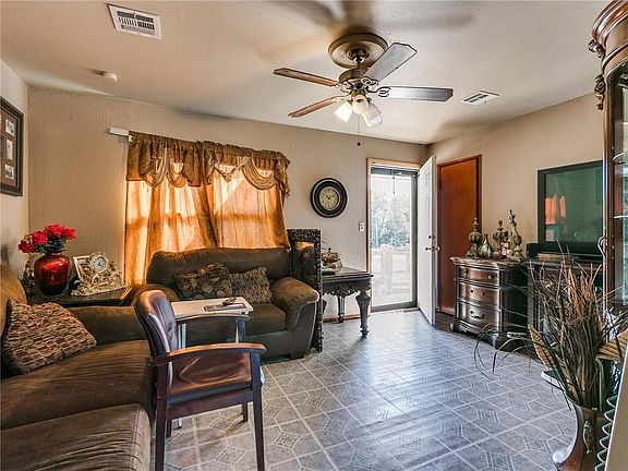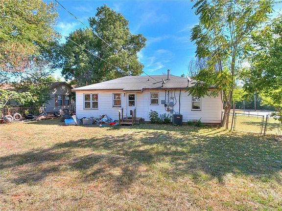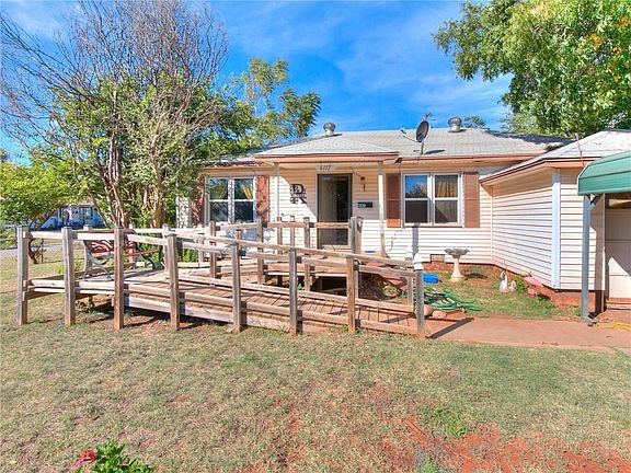 You could call this 2 bedroom, 1 bath home yours! Well loved and kept home in a very quiet neighborhood. Wood ramp leading to front porch, as you enter the home you will be greeted by living and dining rooms, to your right is the kitchen (which features lots of cabinet space) and entrance to garage, on the other side of the house are the bedrooms, both have ample closet space with built in additional storage. Large corner lot, with 1 car garage and 2 car carport gives your vehicles protection from Oklahoma weather. This cute home is across the street from the neighborhood park. Heating and cooling system installed in 2020 Very close to the highway for easy commuting, shopping, schools, etc. Please do not disturb the homeowners, tours and showing by appointment only. House is SOLD AS IS.