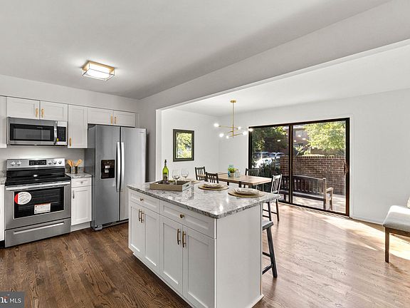 Renovated townhome in the hidden gem of Buckingham Manor offers a front patio, beautiful new hardwoods, freshly painted interiors, and a wooded backdrop close to Lake Roland. Step inside the charming foyer which opens to this spacious home offering a bright and airy living room centered by an ambient fireplace flanked by custom shelving, glass sliders stepping to a deck, a separate dining room, and a striking new kitchen. Showcased on the main level is an upscale kitchen boasting a center island including a breakfast bar, granite counters, white Shaker cabinetry, newly installed energy efficient stainless steel appliances, and an open breakfast room with a front walkout to the patio. Quad windows brighten the owner's suite presenting plenty of closet space and a private bath with an updated shower with subway tile surrounds and a rainfall shower head. Downstairs you find a rec room with dual sliders stepping to a patio and fenced backyard, a laundry, a bonus room, and extra storage. Close proximity to shopping, recreation, trendy shops, restaurants, universities, and I-83, and close enough to enjoy all the amenities and attractions in Towson and in the city.
