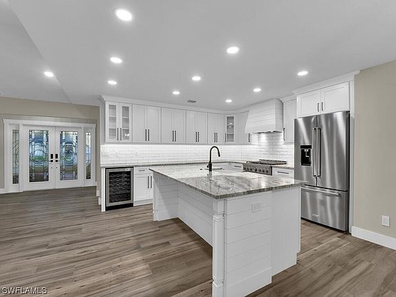 Welcome to The Forest! The Forest Country Club, nestled in the heart of South Fort Myers is your private escape tucked among 620 acres of breathtaking nature preserve lending itself as a spectacular backdrop to its two award-winning walkable golf courses. Golf & Tennis Memberships Available Immediately! (OPTIONAL). Completely remodeled & custom 4 Bedroom + Den, 2 bath home boasts just shy of 2700 sqft all on one floor. Oversized 2 Car Garage, & Heated Pool offering both water and golf course views. This true split floor plan has hardwood plank tile flooring throughout, shiplap trim, custom showers and vanities in both bathrooms. Built in lights and heated bathroom mirrors. The high-end kitchen has a huge, oversized island for entertaining, large farmers sink, top of the line gas range, wine cooler, highlighted by plenty of rich white shaker cabinets for storage. The oversized owner's suite has an enormous walk-in closet. Step outside to your large lani, custom pool, paver decking and outside kitchen. The Forest is a world class equity club with a variety of membership options, a completely renovated clubhouse with fitness center, dining and event center, pro shop, tennis club, bocce and more.