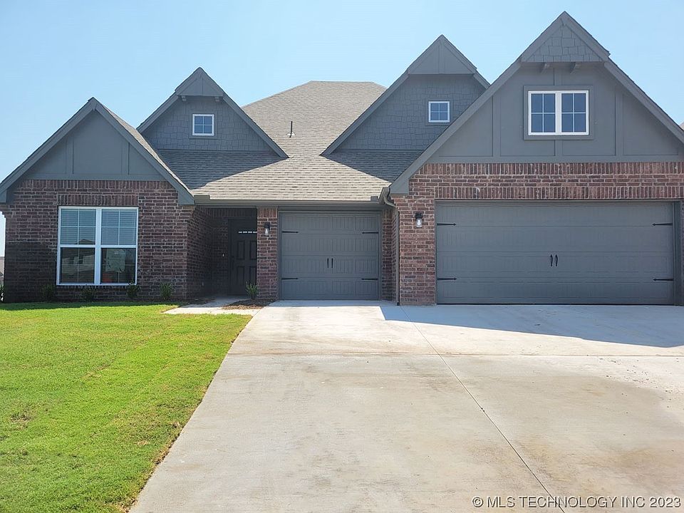 Cadence - 3/2.5/3 ++ - 1 story - Corner pond lot! Full brick w James Hardie siding accents. Open plan w fireplace and wood beams in vaulted living room, plus bonus living area and private office. Kitchen designed with; wood vent hood, green painted cabinets, white subway tile backsplash, large island, quartz countertops, matte black hardware & glass pendant lights, large work station sink, & stainless appliances. Master w ensuite bath w sep tub & tile shower & walk-in closet. LVP wood floors throughout. Covered back patio. C Ask about our $20k Incentive! Move-in-Ready.