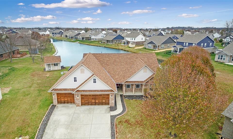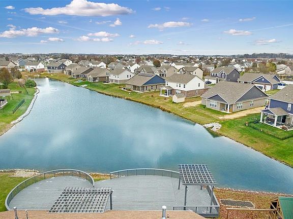 With a massive deck overlooking the pond, this unique 5 bed, 3 bath home is sure to impress! Explore this home via interactive 3D home tour, complete with floor plans, video & more. A 2-story great room with fireplace & majestic pond view welcomes you into the home. Step outside to the jaw-dropping deck featuring 2 pergolas & enough space to host dozens of guests! Owner's suite offers comforts galore with fireplace, sitting room, deck access, & private full bathroom with double sinks, dual-headed tile shower, & spacious walk-in closet. Kitchen features durable concrete countertops, stainless steel appliances, & a roomy walk-in pantry. High efficiency furnace & A/C only 2 years old. Playset, mini barn, 3-car finished garage, & so much more!